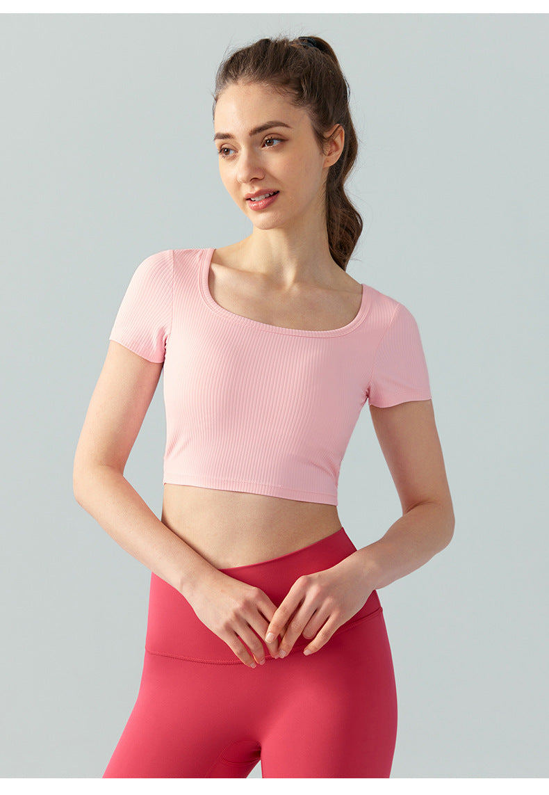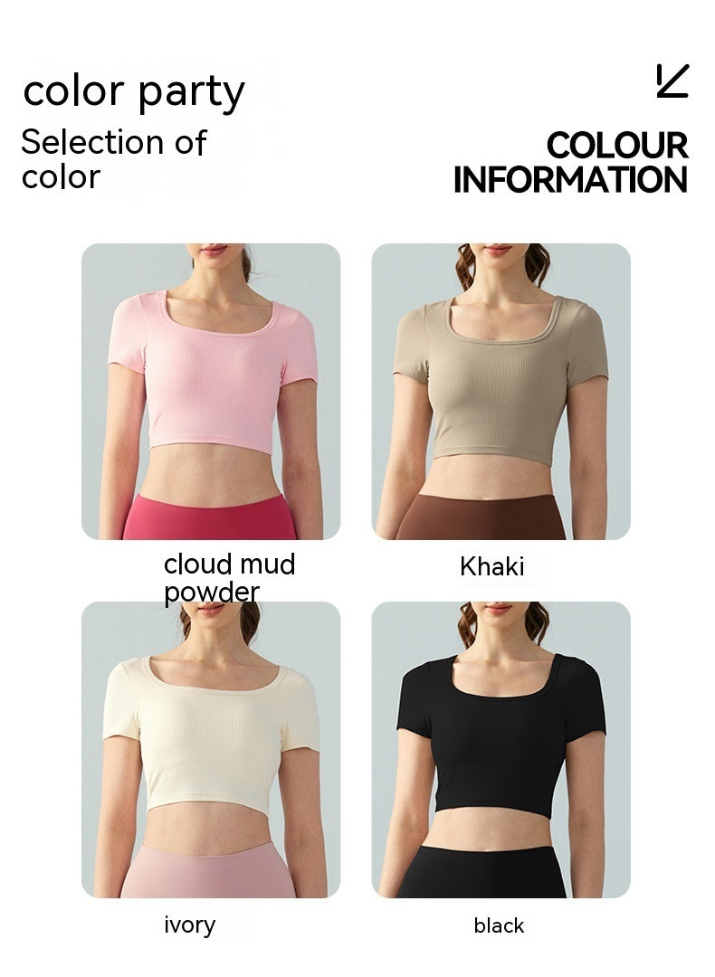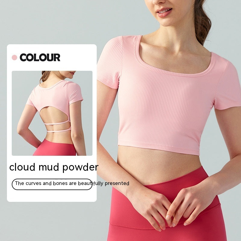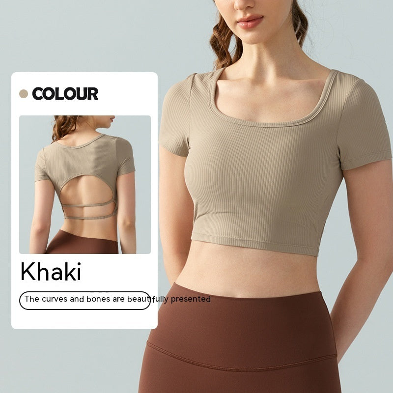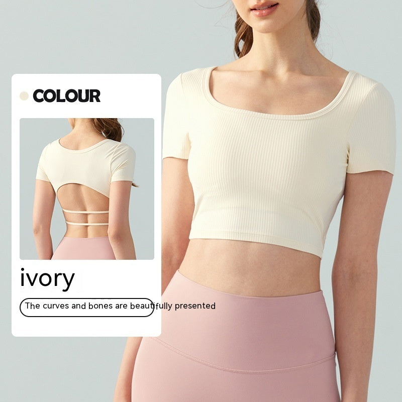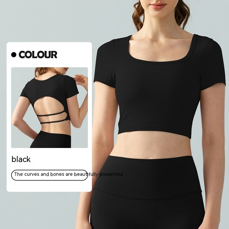 Women's Square Collar Backless Sports T-shirt With Chest Pad Running Fitness Top