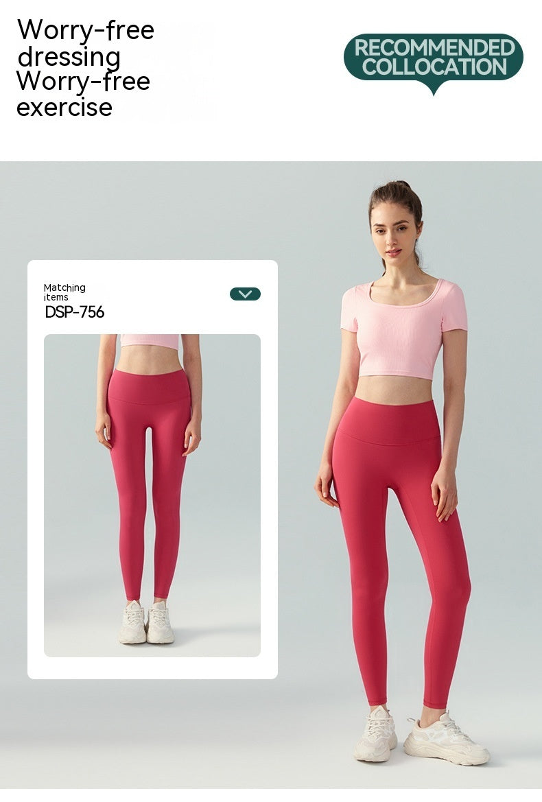 • Women's Square Collar Backless Sports T-shirt With Chest Pad Running Fitness Top